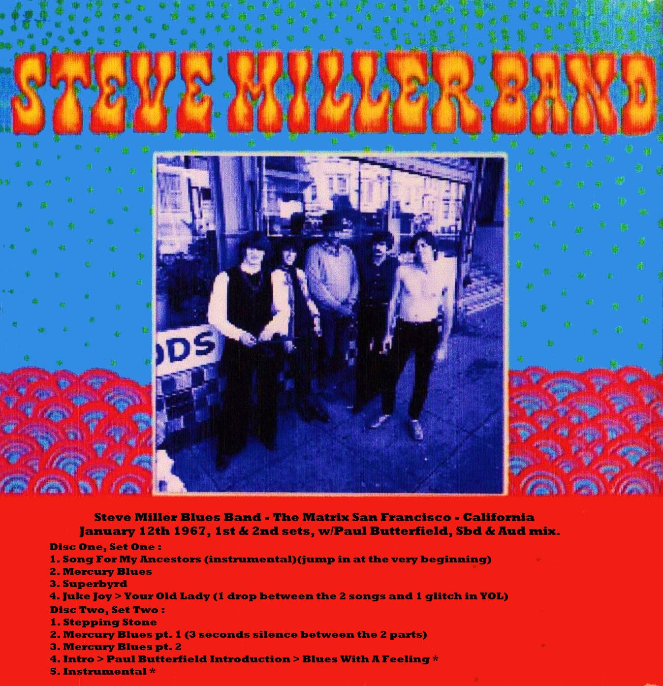 Fantastic concert by Steve Miller Blues Band with a lot of psychedelic guitars' it was in 1967 !!! Many thanks to Fabio-38f the original seeder on Dime.... Sound quality is really various from really good to just ok...it sounds to me like a mixture of audience and soundboard source. 1st set is recorded better than second set. On the other side the performance is so good that it worths to be heard......I leave it like it was, so in case you can make your personal sound's manipulations......